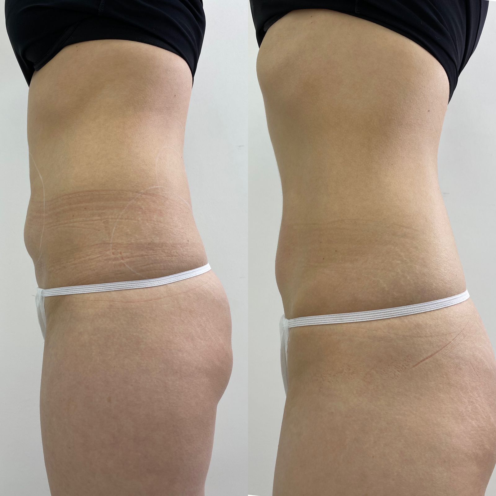 Все зависит от плотности и толщины жировой складки. Рыхлые и подготовленные складки, (например, после массажа) уходят быстрее. При необходимости процедура повторяется через месяц.