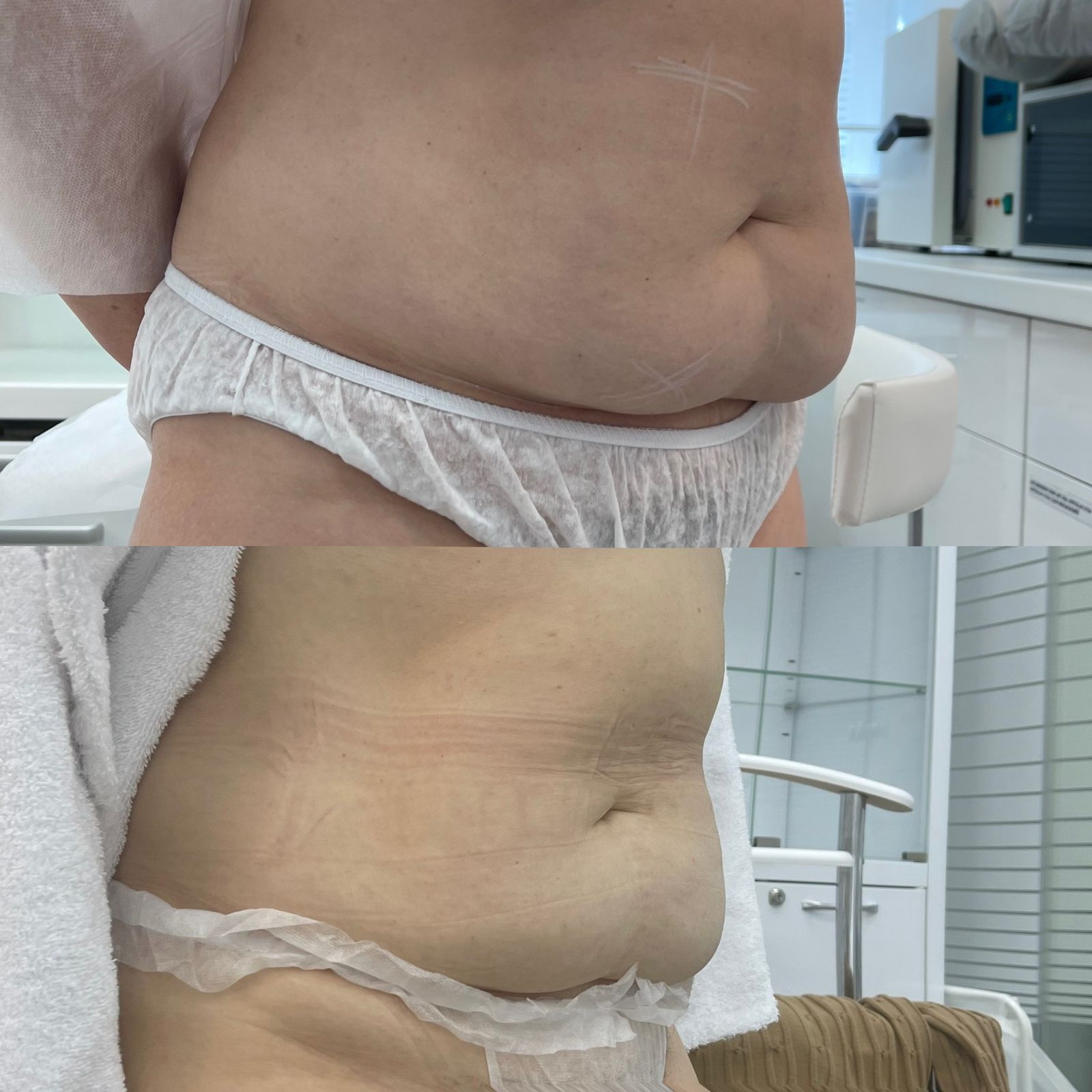 В течении 3-4х недель после процедуры жировые клетки в зоне воздействия теряют жизнеспособность и бесследно выводятся из организма.